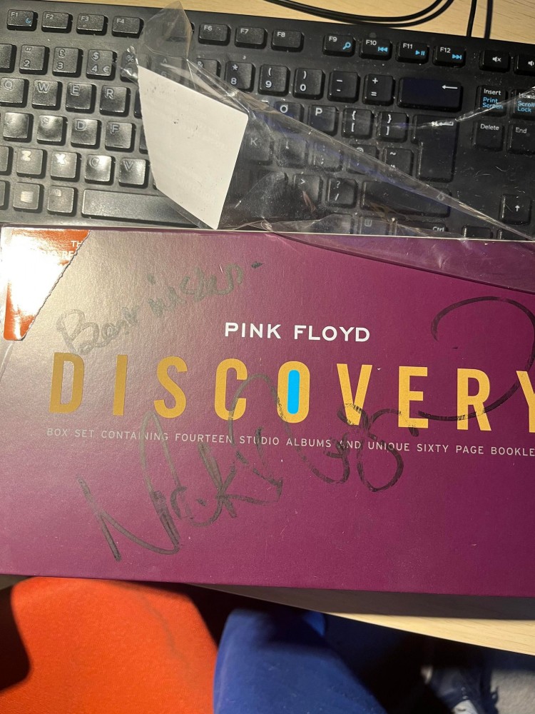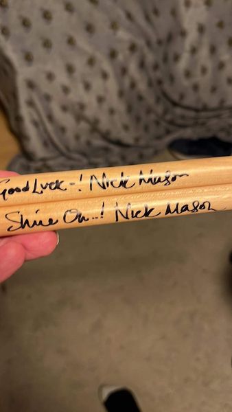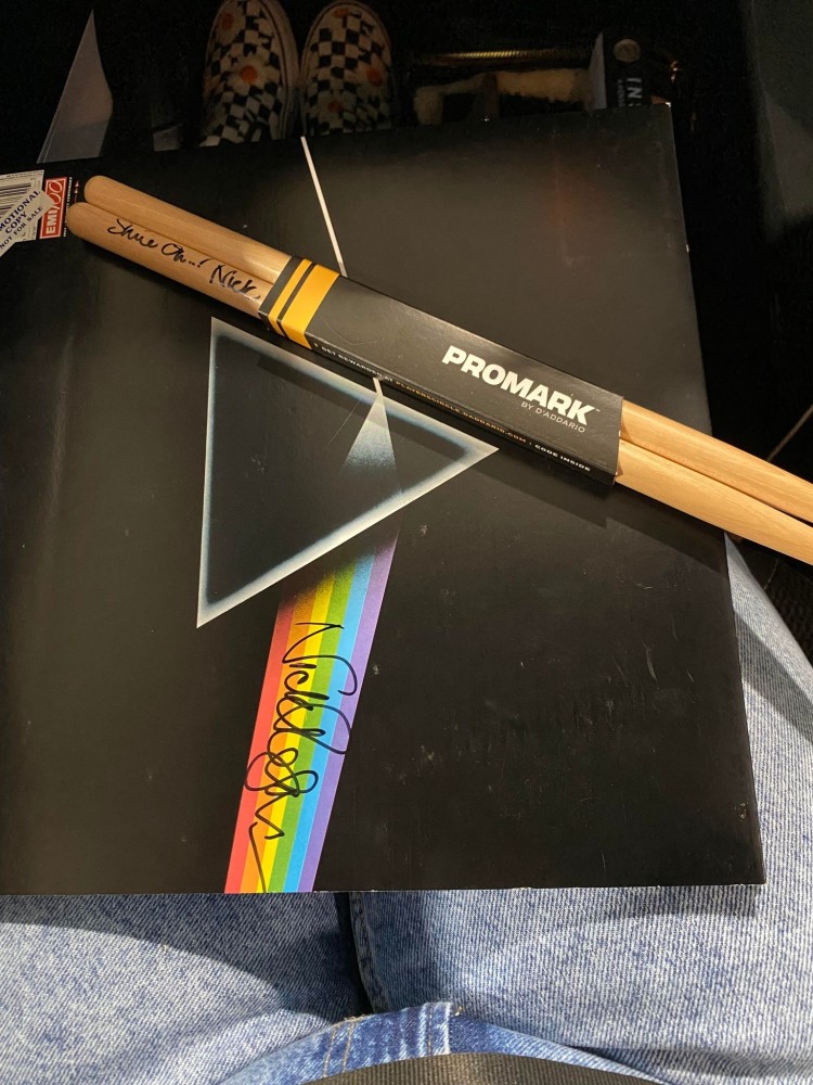 If there are any Pink Floyd fans out there we will be auctioning off some signed items by drummer Nick Mason
