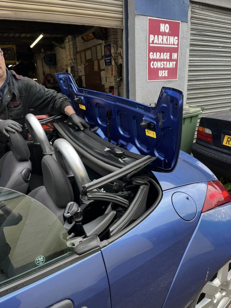 Electrics were checked and the roof, windows and mirrors are now working. New battery and injector fitted.